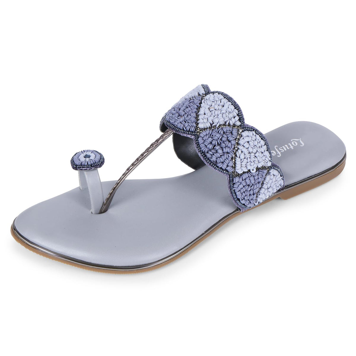 Lotusfeet Womens Flat Embroidered Wedding Sandals TC 0236 - Grey / 38